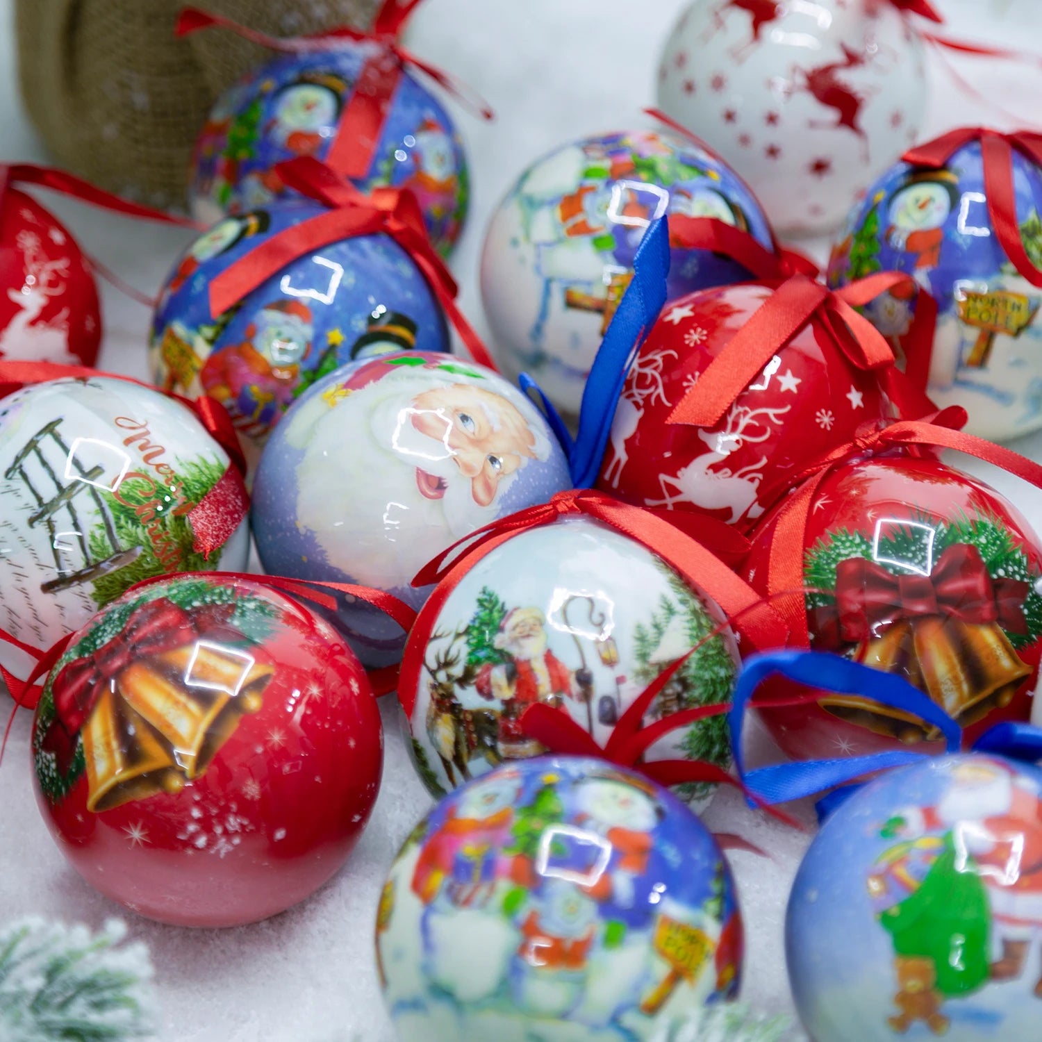 8cm 1pc Christmas Ball Decoration Xmas Tree Ornaments Pendant Elk Santa Snowman Pattern Hanging Balls Home New Year Gift Navidad